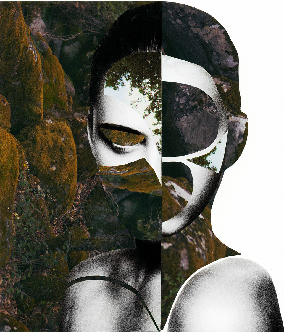 Creek is the beginning of a new series of handmade collages where I continue my exploration of aesthetic beauty marked by the synergy between the human body and nature.