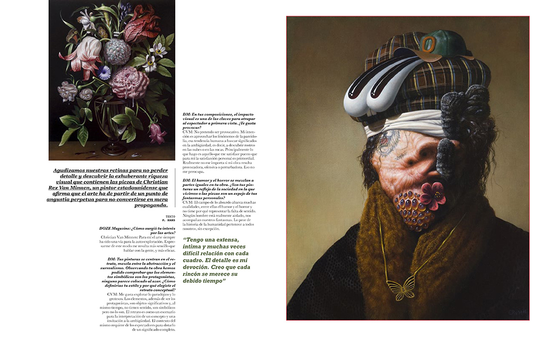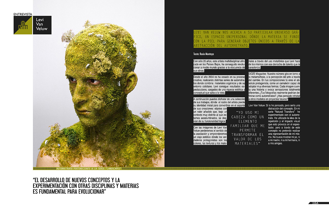 DOZE Magazine es un proyecto editorial online que fundé en 2010 junto a Mario Izquierdo y Alejandro Bazal, al que se sumaron después Alejandro Meitín, Borja Otero e Ignacio Tejedor. Durante cuatro años y medio he co-dirigido y diseñado tanto el portal de contenidos diarios como las revistas temáticas trimestrales, también online y disponibles en la web en formato pdf. Mis acciones principales dentro del proyecto han sido: creación de imagen corporativa, diseño y maquetación de contenidos, selección y comisariado de artistas, redacción de artículos, reportajes y entrevistas, coordinación de equipo de redacción y elaboración de producción fotográfica propia para las ediciones trimestrales.
