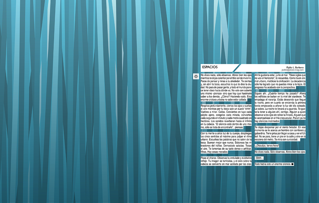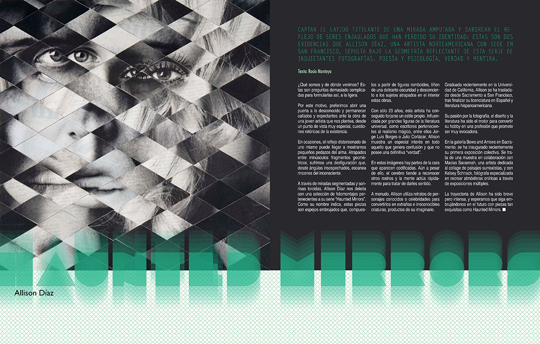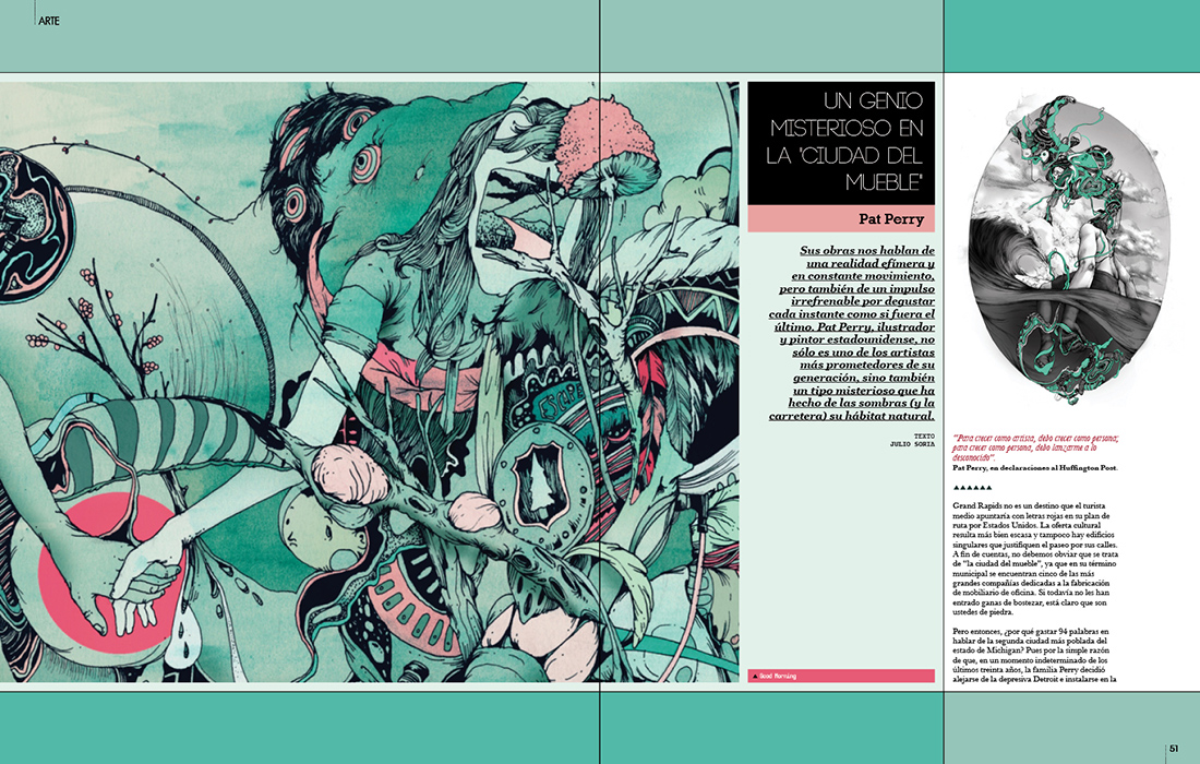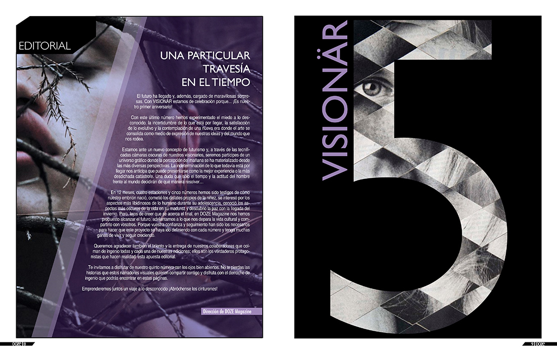 La parte gráfica dentro del portal de contenidos diarios también la he desarrollado yo en el último rediseño de la web, que puedes consultar en: www.doze-mag.com. DOZE Magazine surgió por la necesidad de crear un espacio como punto de encuentro entre creadores y amantes del arte y por el deseo de explotar nuestras habilidades dentro del diseño web y editorial.