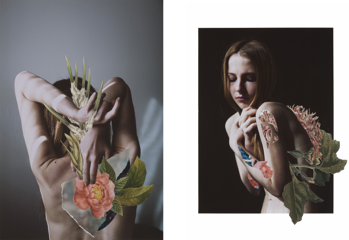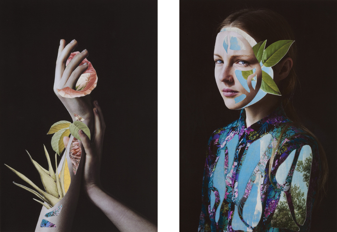 Under the inspirational influence of surrealism and classical Raphaelite painting, Hypnopompic reflects on the delicacy of the female figure in synergy with nature, as an ode to the ephemeral beauty and fragility of human beings. The portraits have been made by the artist Rocio Montoya and intervened with the technique of handmade collage, using symbolic elements extracted from old botanical illustrations and various print magazines.